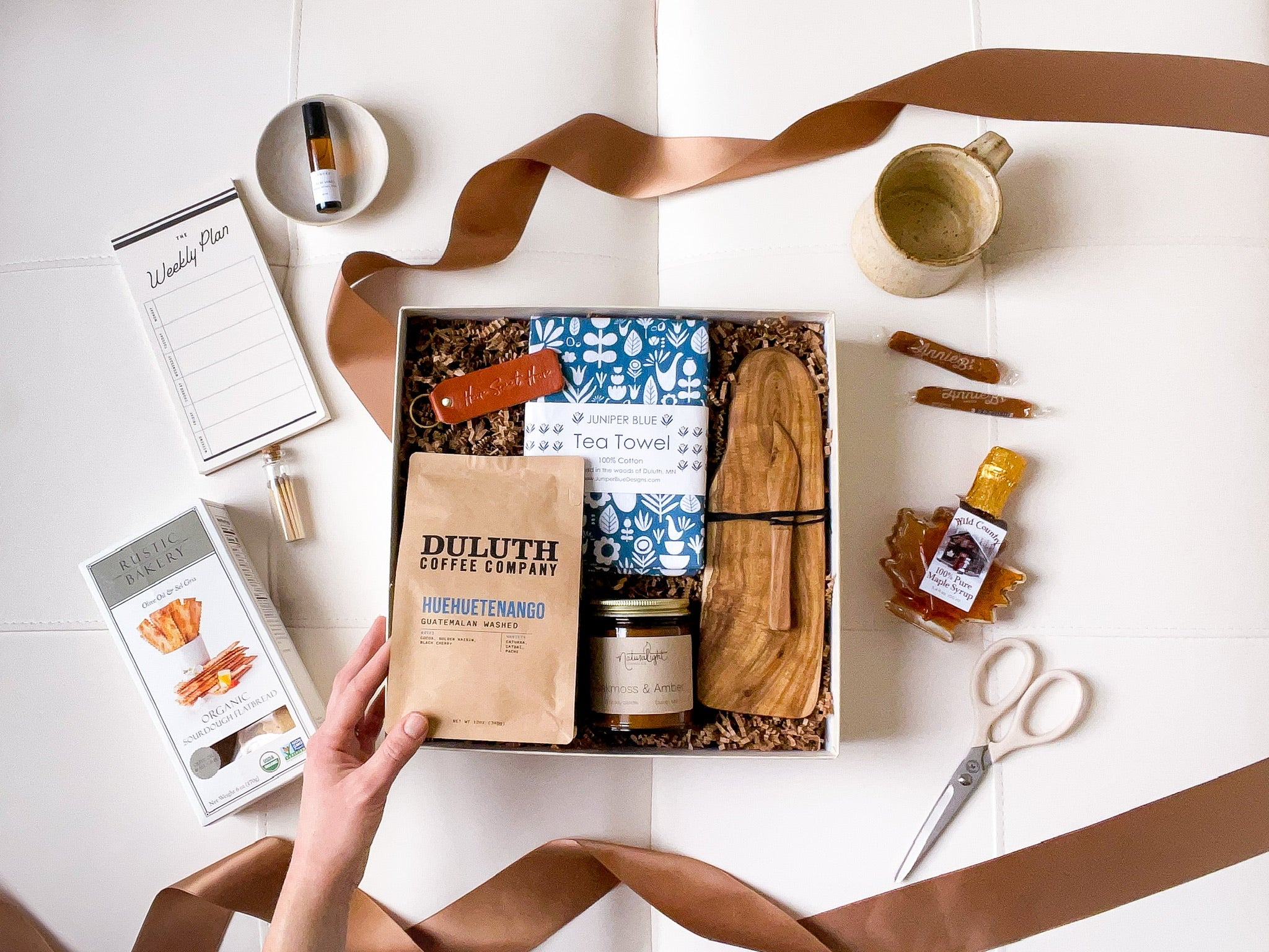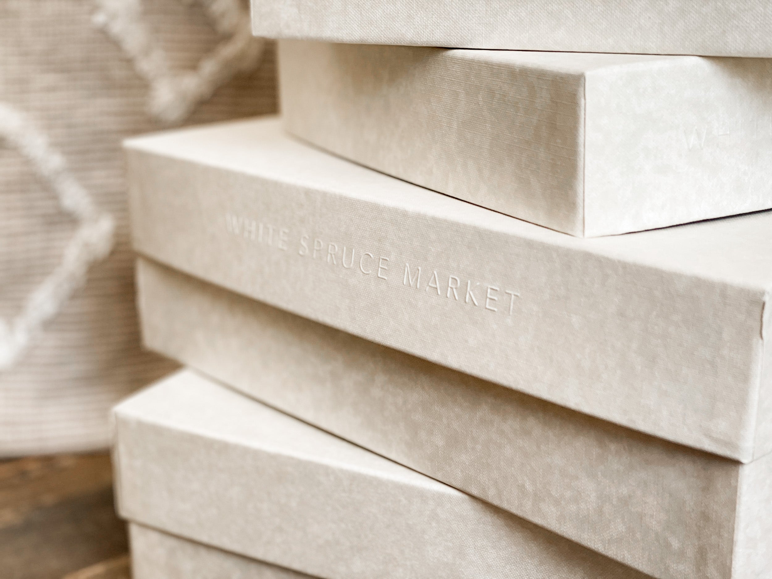 At White Spruce, we are truly full-service, covering every detail from gift concept creation to product sourcing to card-writing, packing, shipping, fulfillment, and managing future orders.